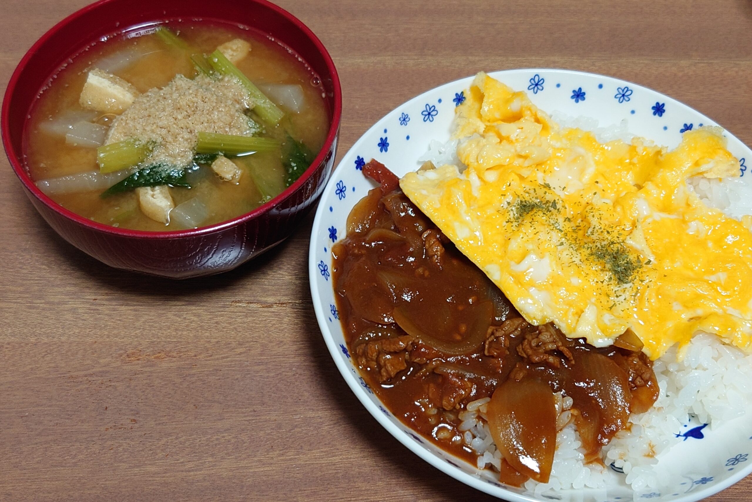このハヤシライスの香りを嗅ぐと、卵も添えたくなります。